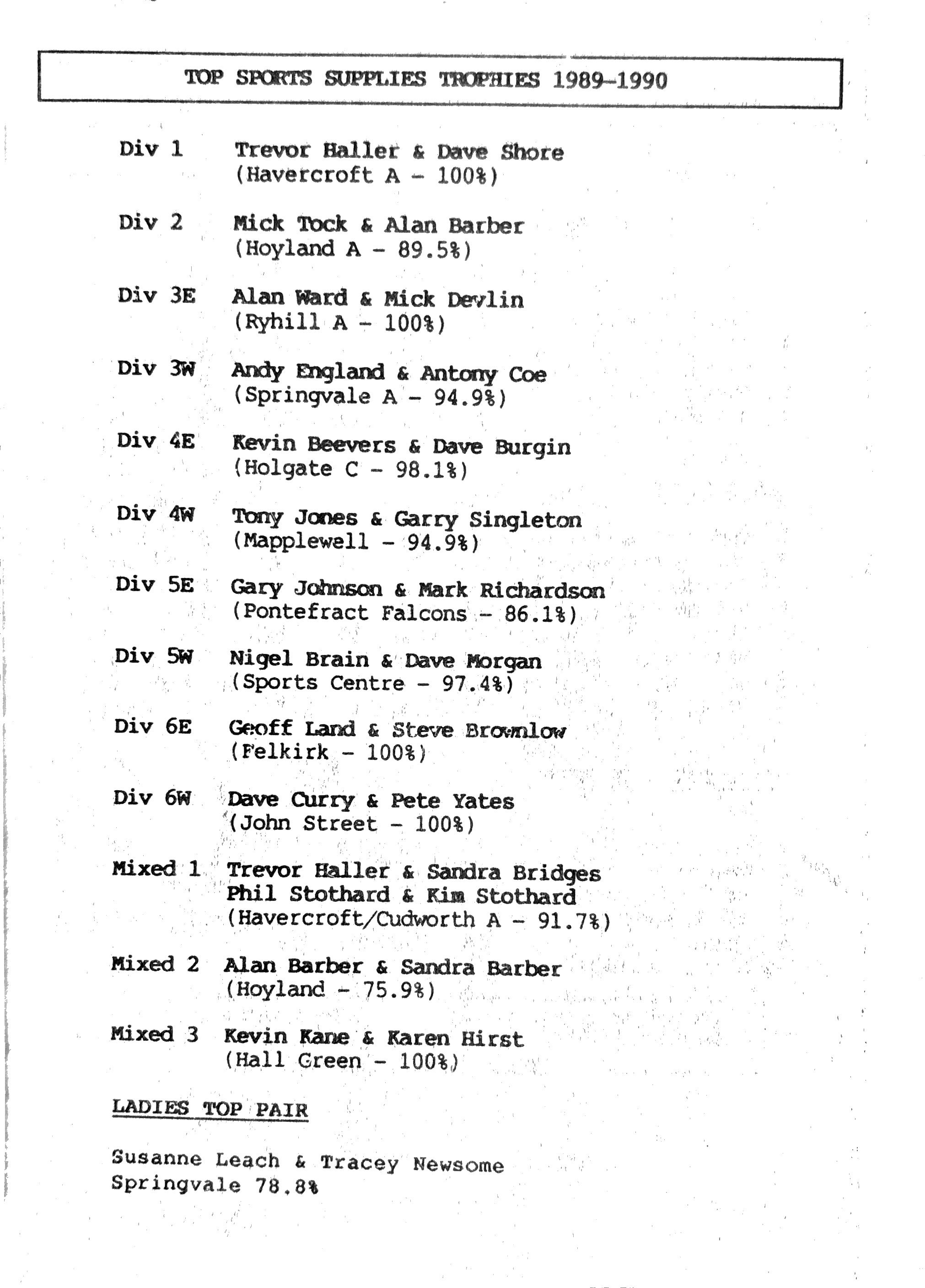 | Division 1 | O Kril / J Lucassi - Manvers Park A 89.6% |